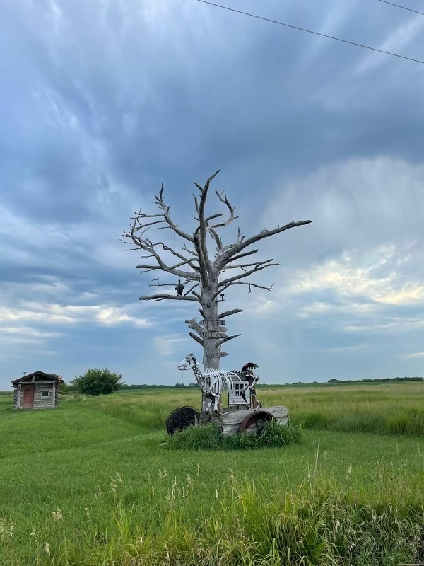 On Saturday we biked 115 miles from Eads to Pueblo Colorado. This is the distance record for my biking career. It was surprisingly pleasant. The train was fairly flat, but as we went west, it became more textured and interesting. By the time we reached Pueblo we could see the mountains in the distance. Sunday was a rest day; Kathy met me in Pueblo and we drove through the foothills. There was an amazing structure called Bishops Castle, a completely random collection of spires and staircases that couldn’t have passed any building code, but which had hoards of people, including us climbing all over it.