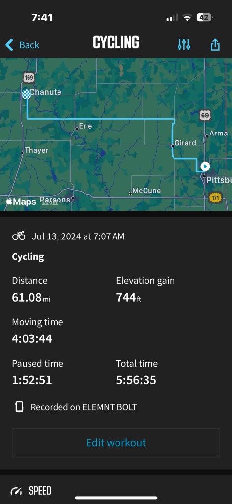 On Friday, we biked 56 miles, leaving Kansas and moving to Colorado. The first portion of Colorado looked very much like Kansas; flat and with grain elevators in every small town. We stayed in Eads, a tiny town.