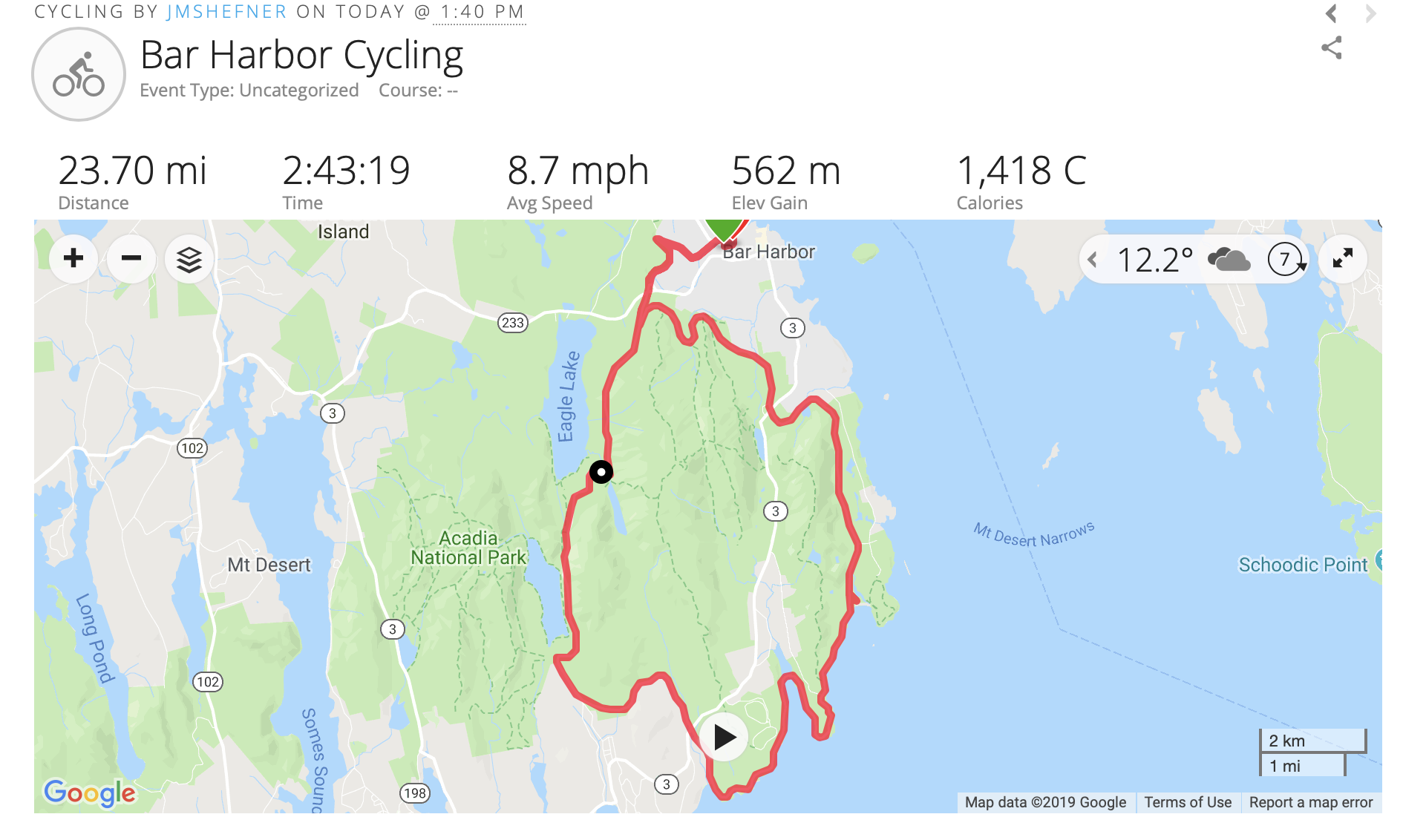 I’m in Bar Harbor and am tuning up for the start of the big ride on Tuesday. Acadia national Park is a beautiful place to start from!